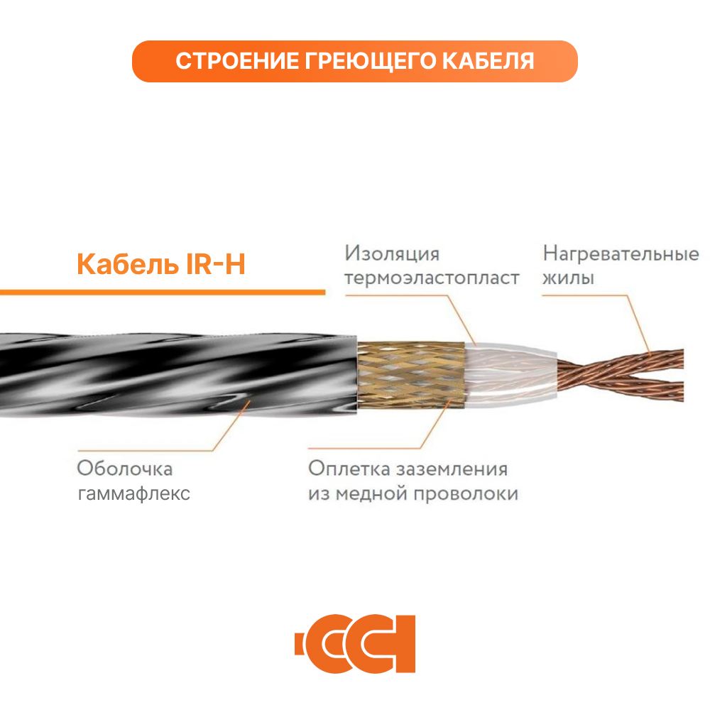 Резистивные секции нагревательные кабельные IR-H. Поставляются в различных вариациях длины. Применяются в системах антиобледенения кровель, водостоках зданий и сооружений, на открыты площадках и тротуарах. Оплетка из медных луженых проволок обеспечивает дополнительную защиту от механических повреждений.