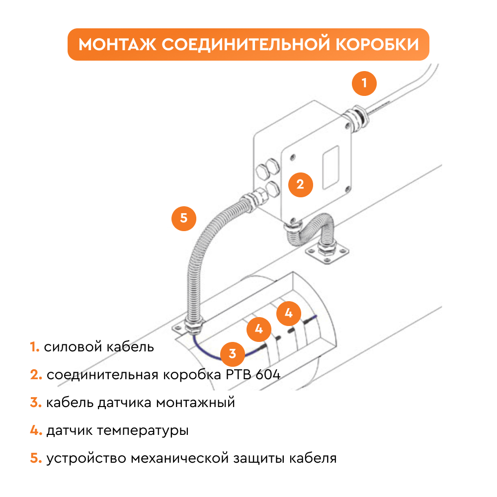 Коробки соединительные PTB предназначены для подключения кабелей системы управления электрообогревом. Крепятся на стене здания, на близлежащей металлоконструкции или при помощи кронштейна непосредственно на трубопроводе. Коробки позволяют выполнить подключение одного или двух кабелей управления.