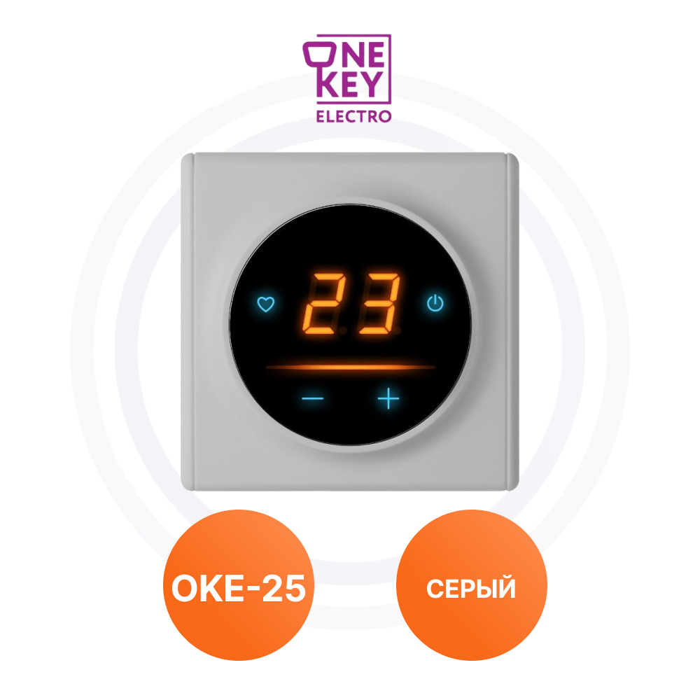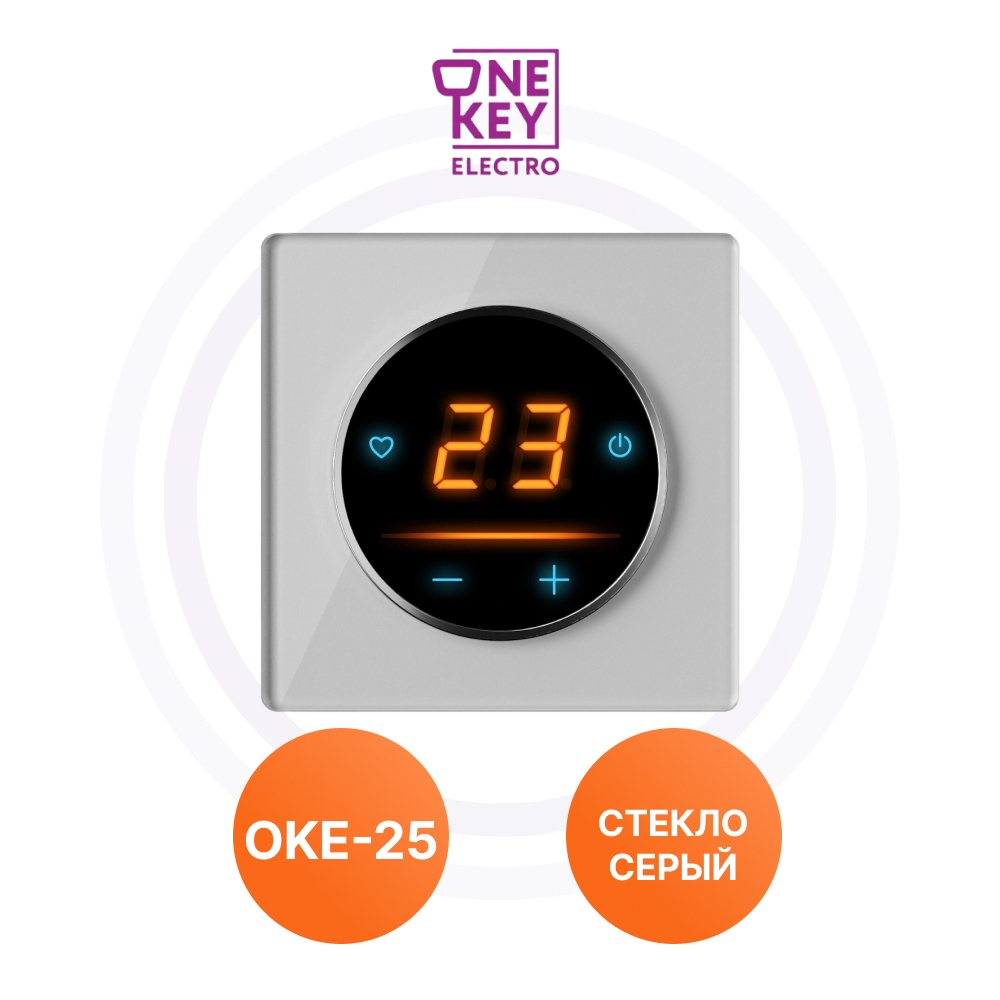 Комплект. Терморегулятор OneKeyElectro ОКЕ-10 + рамка стеклянная, серый