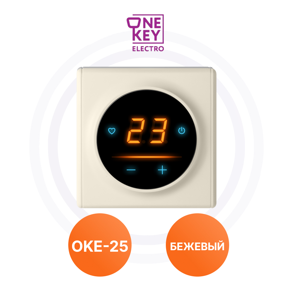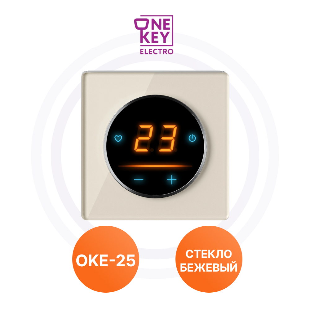 Комплект. Терморегулятор OneKeyElectro с WiFi ОКЕ-25 + рамка стеклянная, бежевый