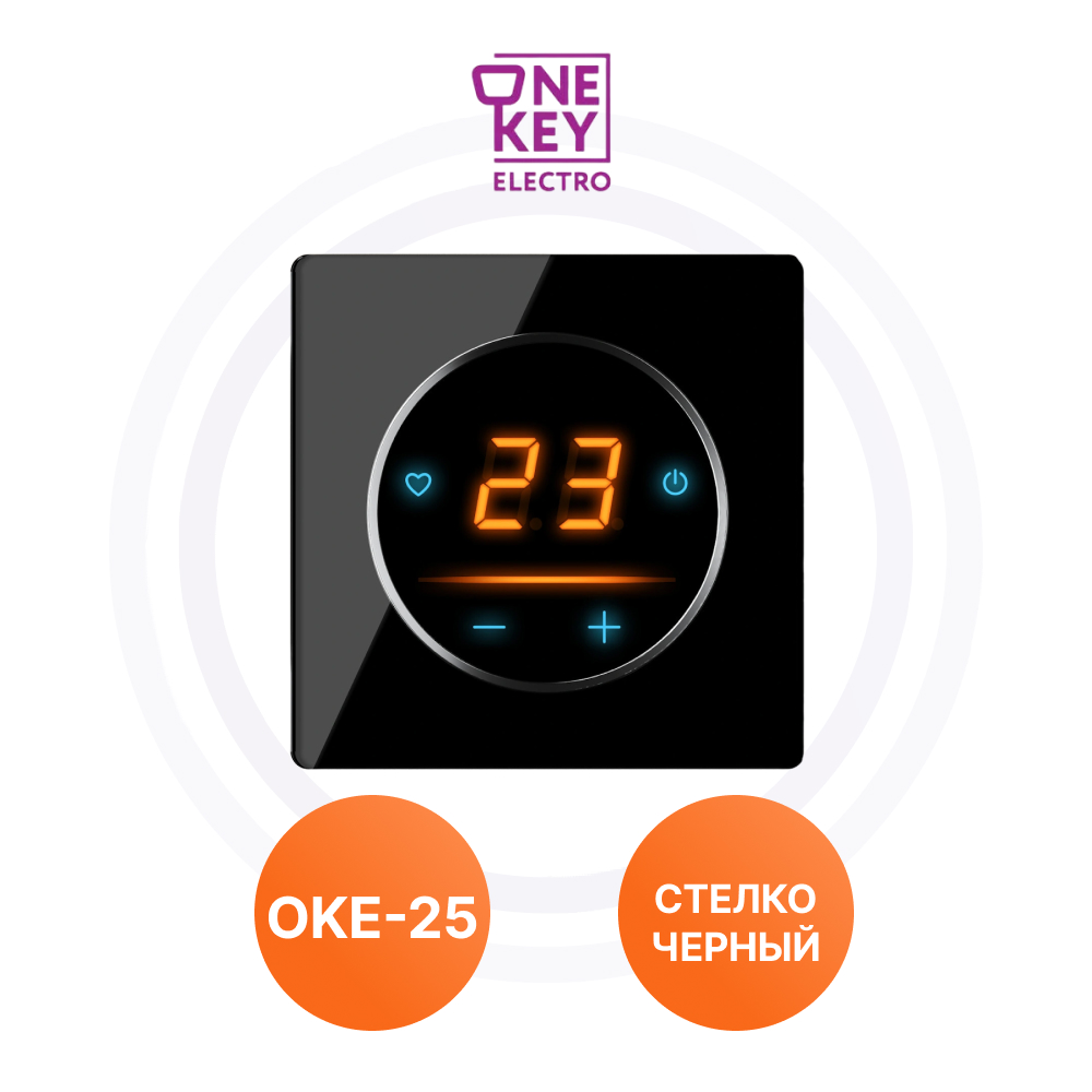 Комплект. Терморегулятор OneKeyElectro ОКЕ-10 + рамка стеклянная, черный