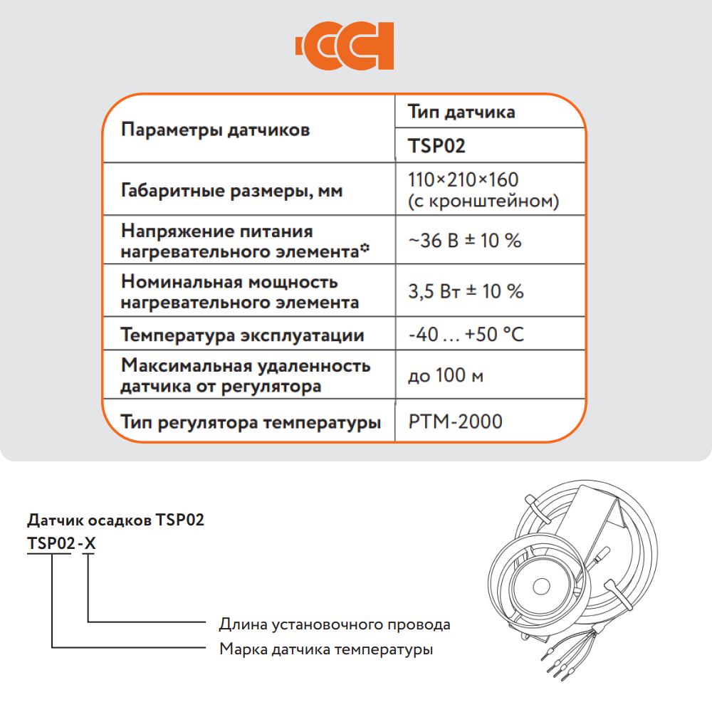 Датчик осадков - для определения наличия внешних осадков на обогреваемой поверхности.
