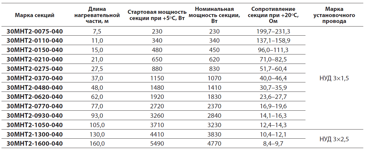 - Использование секций МНТ с широкой линейкой длин (от 7,5 м до 160 м) позволяет снизить затраты на силовую часть системы обогрева;