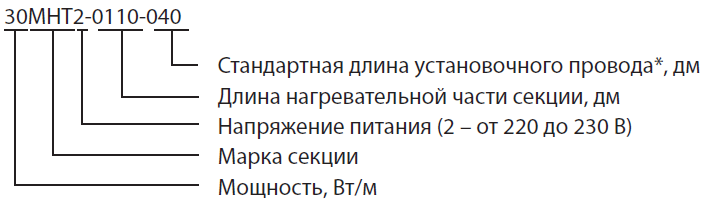 - Секция МНТ изготовлена в двухжильном варианте. Подвод питания осуществляется с одного конца. Второй конец заделан герметичной муфтой на производстве;