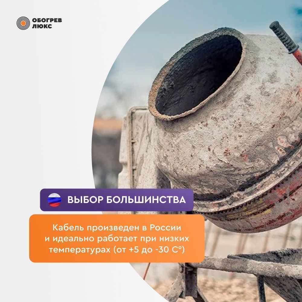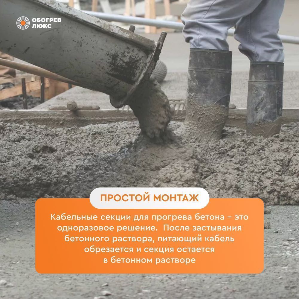 - Максимальная рабочая температура греющего кабеля составляет 80°С, что является оптимальной температурой для предотвращения перегрева бетона