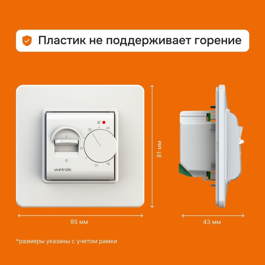 - Терморегулятор устанавливается в стандартный подрозетник диаметром 60 мм;