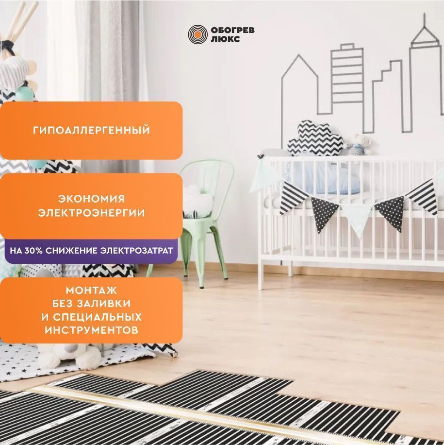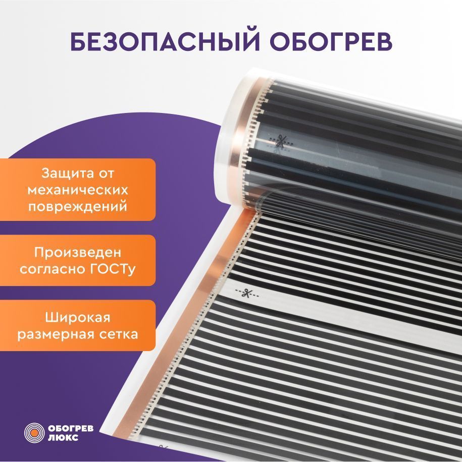 Карбоновая нагревательная пленка Обогрев Люкс 220 Вт/м2 предназначена для обустройства системы теплого пола. Нагревательное полотно совместимо с любыми декоративными покрытиями: ламинатом, линолеумом, паркетом. Монтаж пленки выполняется сухим методом и не требует проведения масштабных строительных работ. Нагревательное полотно рекомендовано для укладки на кухне, в спальне, в детской, прихожей и других помещениях, не имеющих постоянную повышенную влажность.