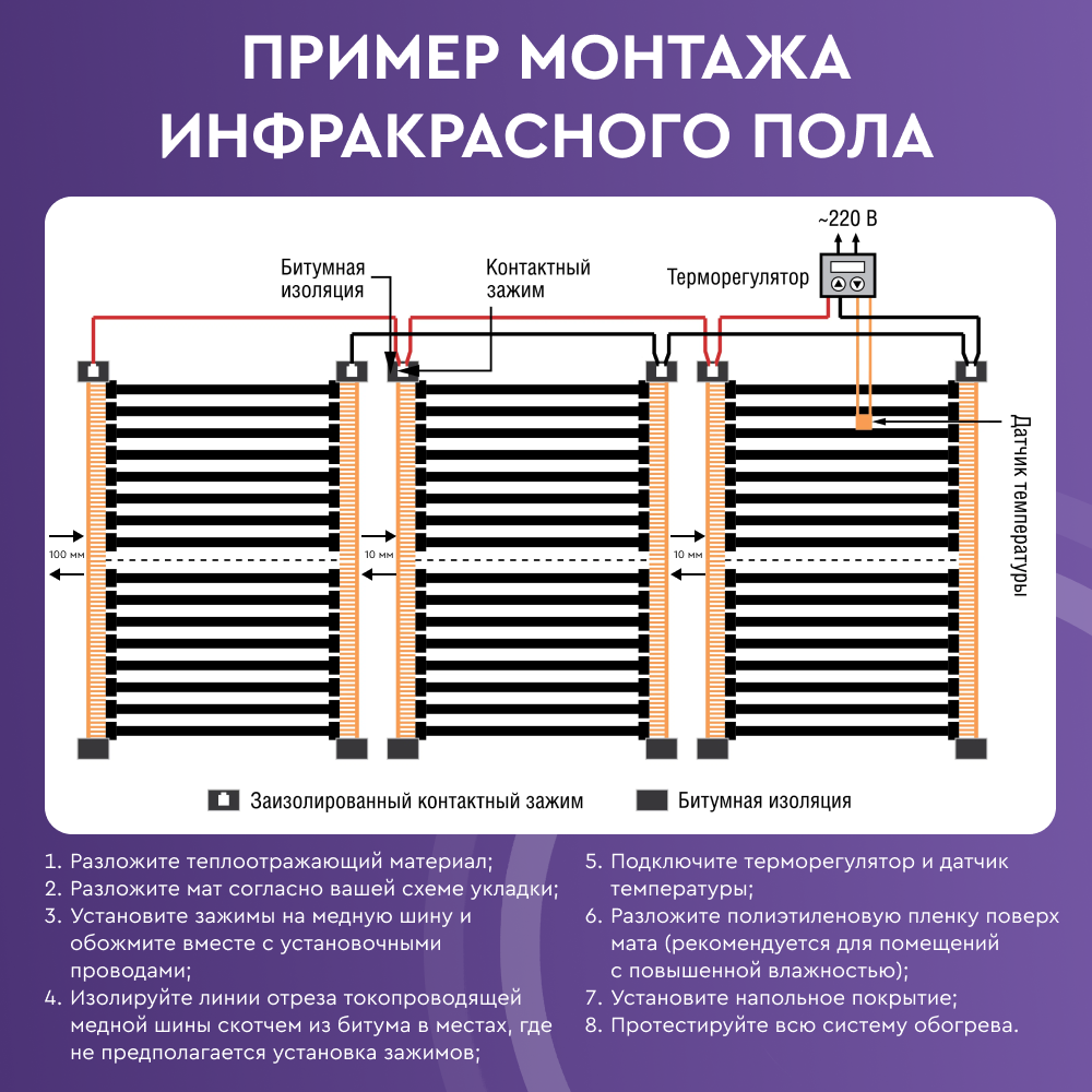 - Возможность подключения к электросети 220В., использование терморегулятора сэкономит электроэнергию;