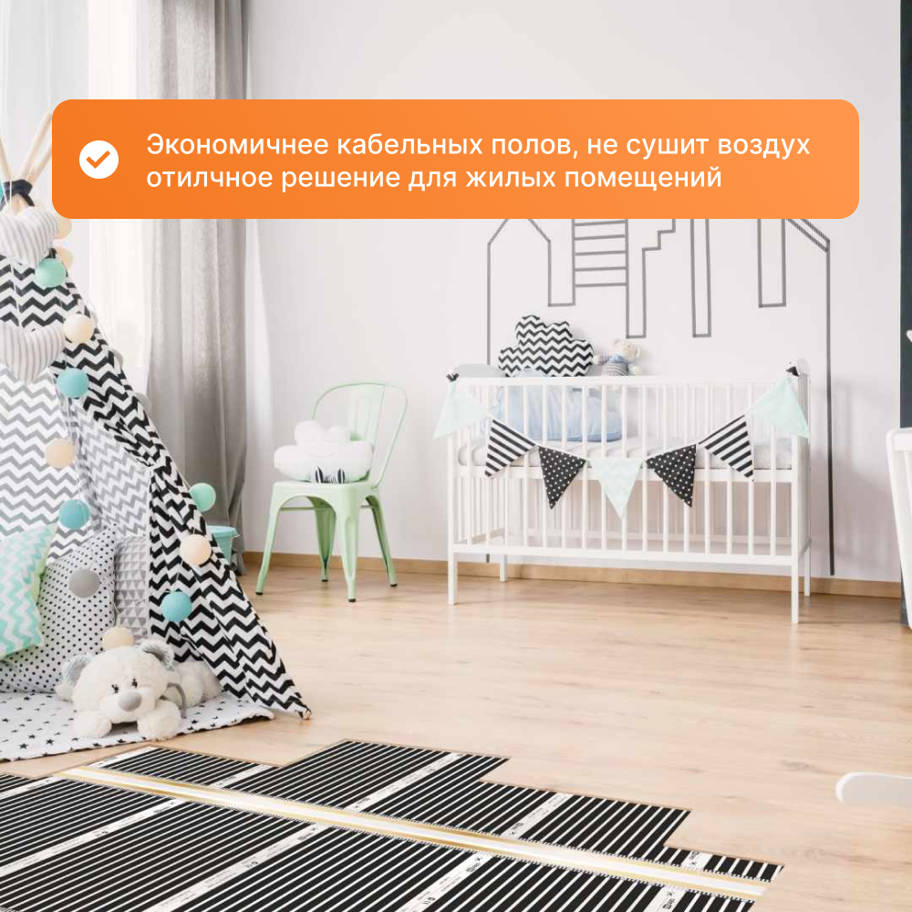 • Экономичнее кабельных теплых полов на 60%;