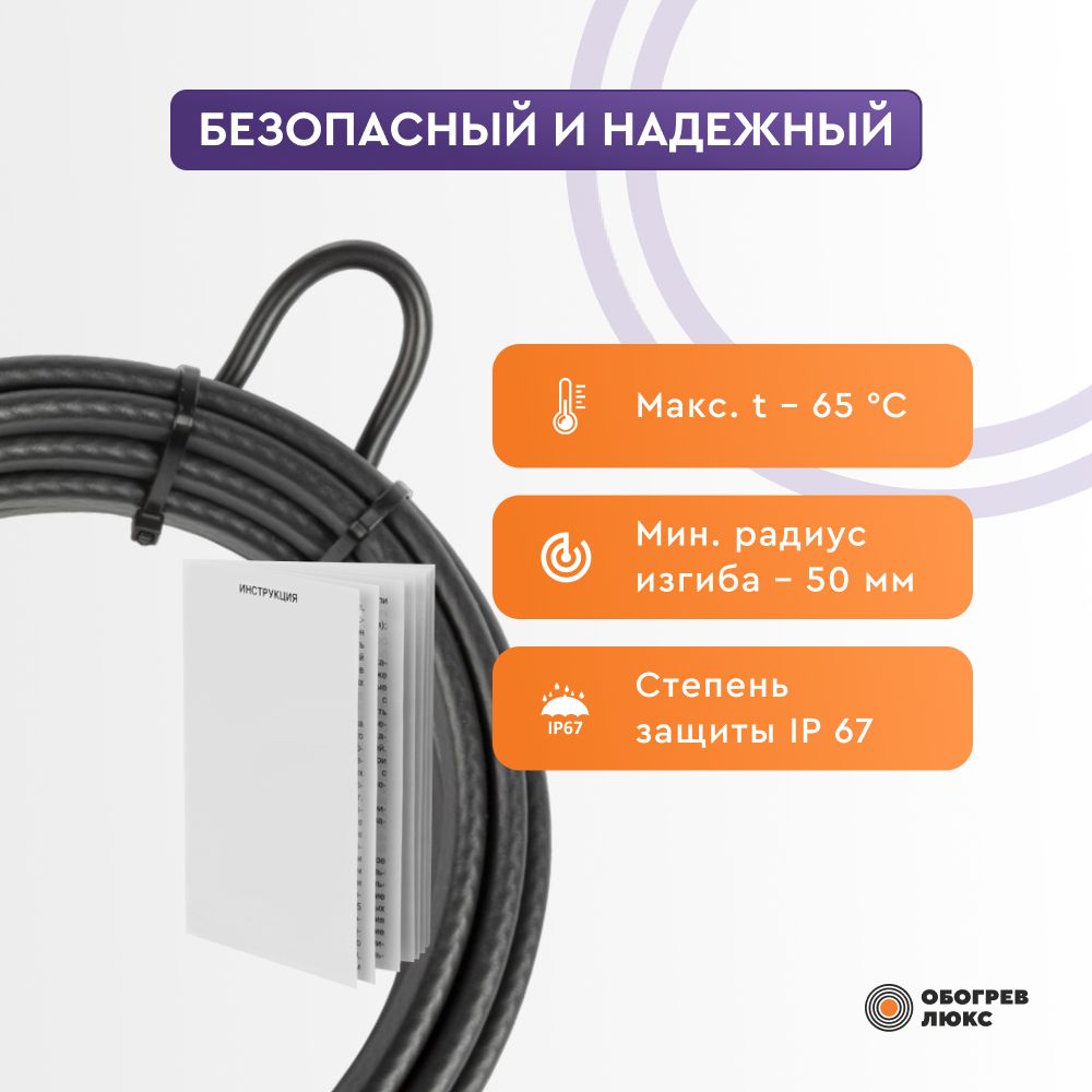 • Саморегулирующийся кабель безопасен в эксплуатации. Благодаря способности подстраиваться к внешним условиям он никогда не перегревается – а значит, полностью отсутствует риск возгорания.