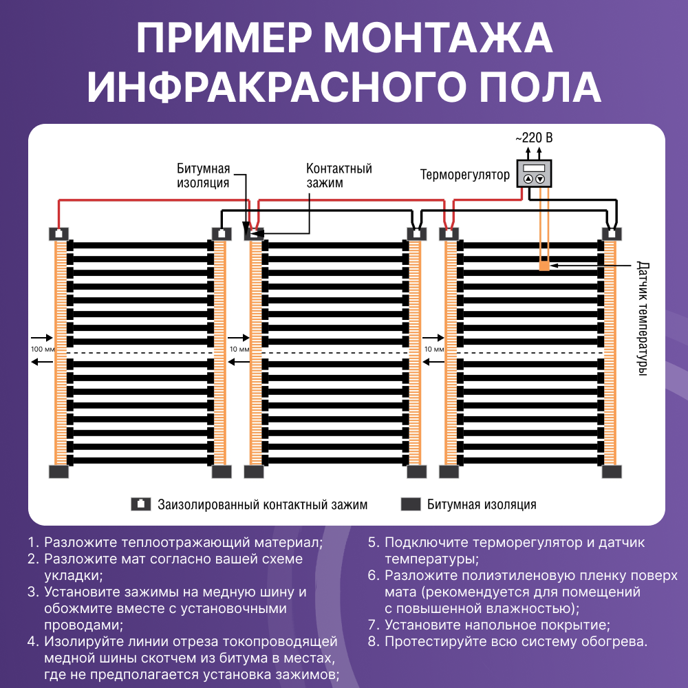 ИК-полы - ультратонкие пленочные инфракрасные полы для установки сухим монтажом - отличный вариант под паркет, ламинат, линолеум или ковролин. За счет своей повышенной мощности, данный вид теплых полов отлично подойдет в качестве основного источника обогрева жилых помещений. В нашем ассортименте представлены как готовые комплекты, так и пленка на отрез для помещений: