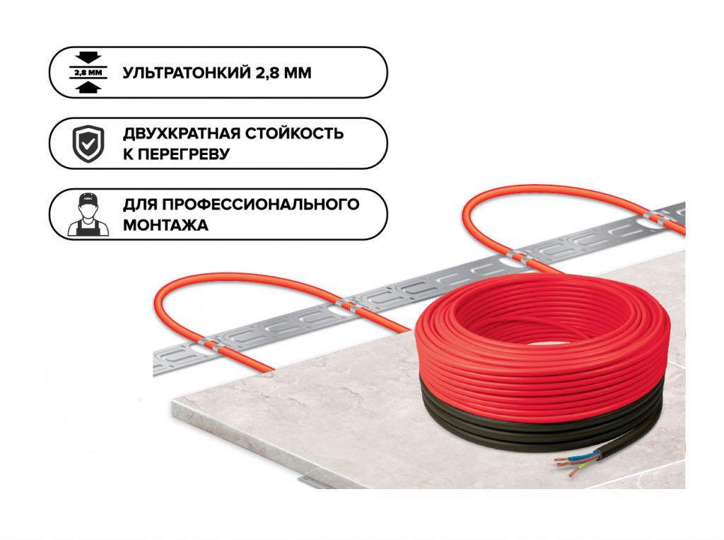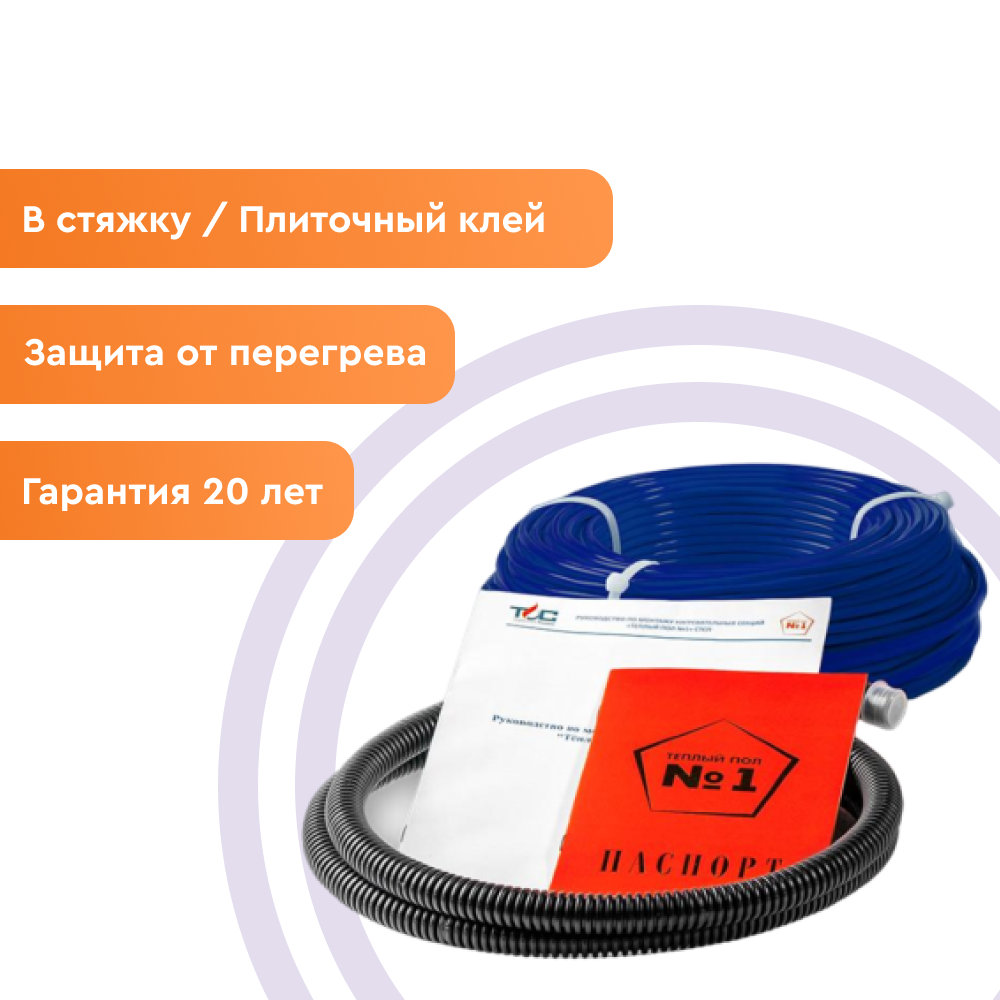 Кабельные секции в стяжку - теплые полы со свободным шагом укладки, исходя из названия, устанавливаются в стяжку толщиной 4-8 см. После установки, вы сможете уложить поверх данного пола любое напольное покрытие - от плитки до паркета и ламината. За счет свободного шага укладки, вы сможете самостоятельно распределить тепло по всему помещению, используя теплый пол в качестве основного или дополнительного источника обогрева. Теплы пол подойдёт для таких помещений, как: