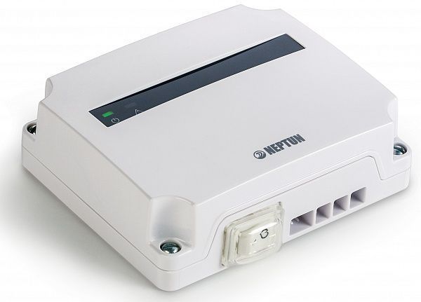 Модуль получает сигнал о протечке от проводных и беспроводных датчиков и передает сигнал на перекрытие воды на шаровые краны с электроприводом. Обеспечивает световую и звуковую индикацию при аварии. Гарантия составляет 10 лет.