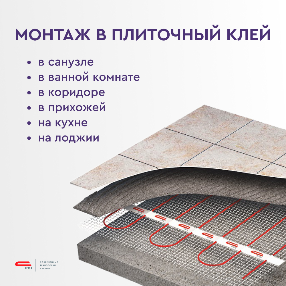 - Возможна укладка непосредственно в плиточный клей. Используются в случаях, когда необходимо минимизировать высоту поднятия уровня пола;