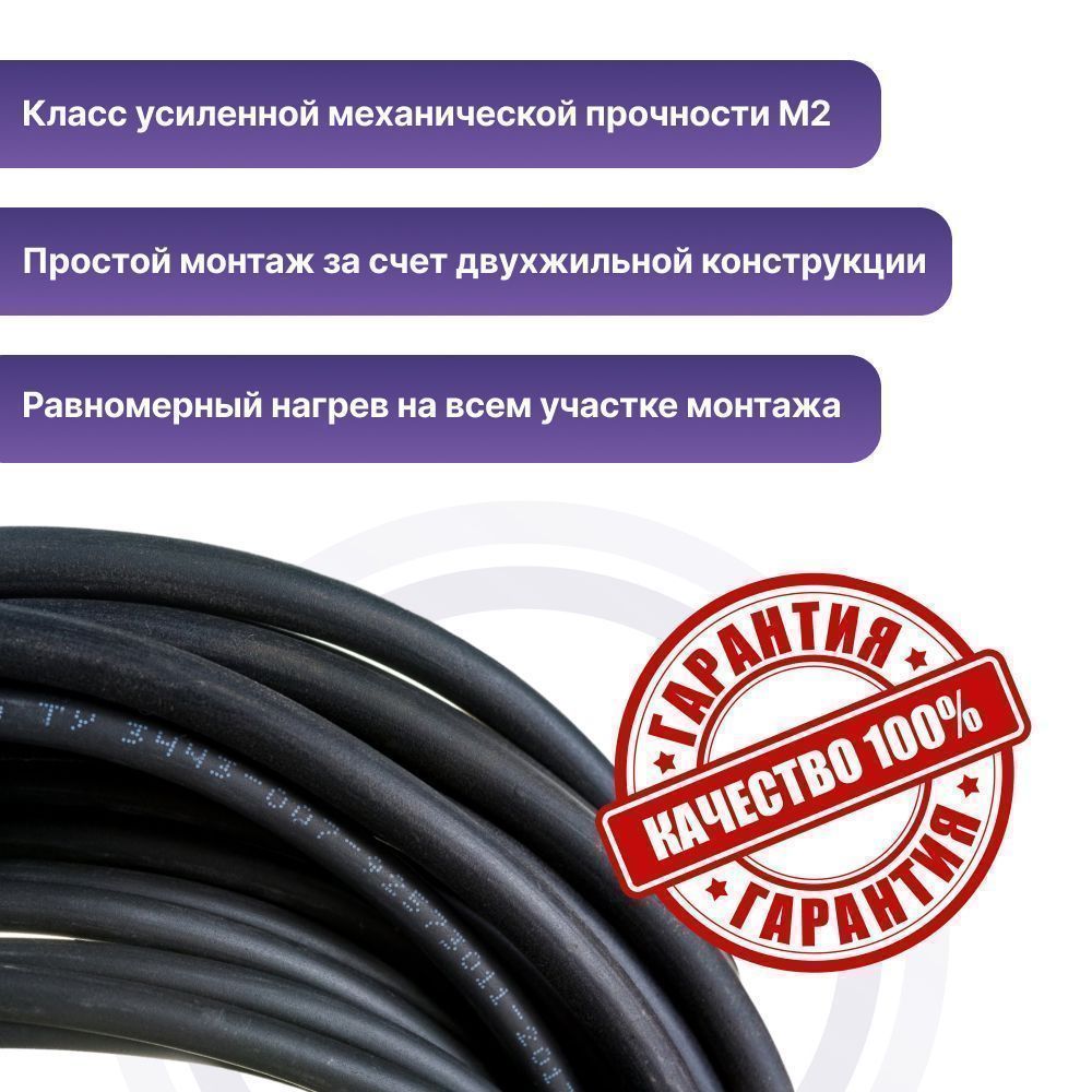 Резистивные греющие кабели - представляют собой нагревательные жилы, покрытые снаружи изоляционным материалом и оплеткой. Сопротивление у такого нагревательного элемента постоянное. Резистивный нагревательный кабель покупают только готовым комплектом и в случае перегорания потребуется менять всю систему. При этом схема монтажа требует обязательного использования терморегулятора. Резистивные кабели считаются идеальным решением для обогрева открытых площадей, кровли, а также для прогрева грунта и бетона, однако область применения такое же широкое: