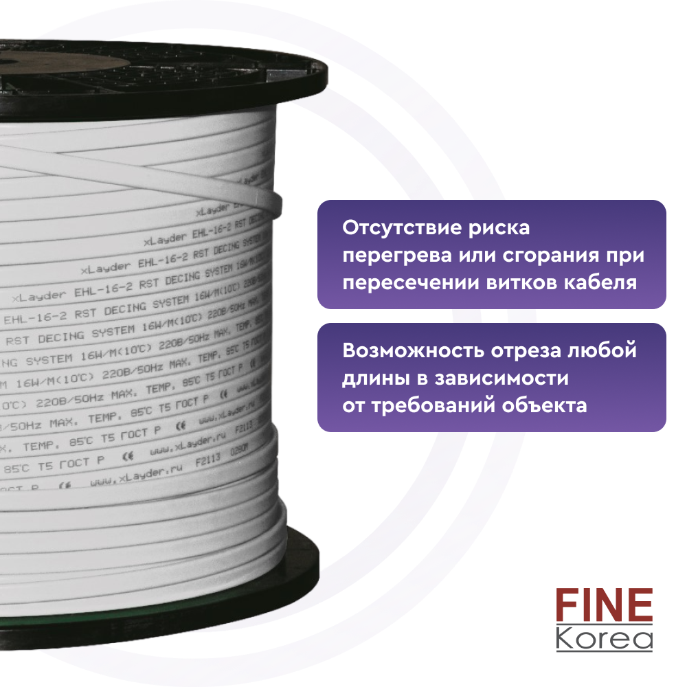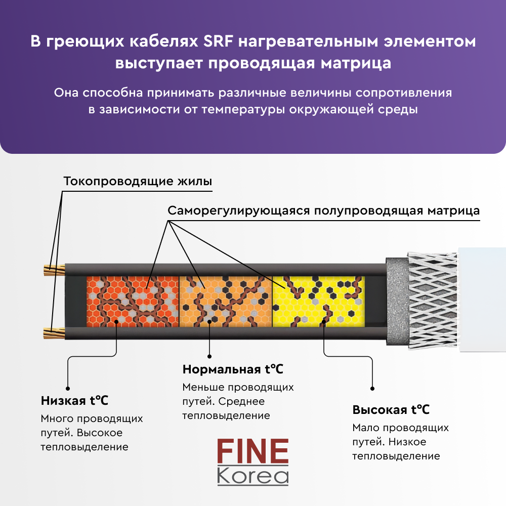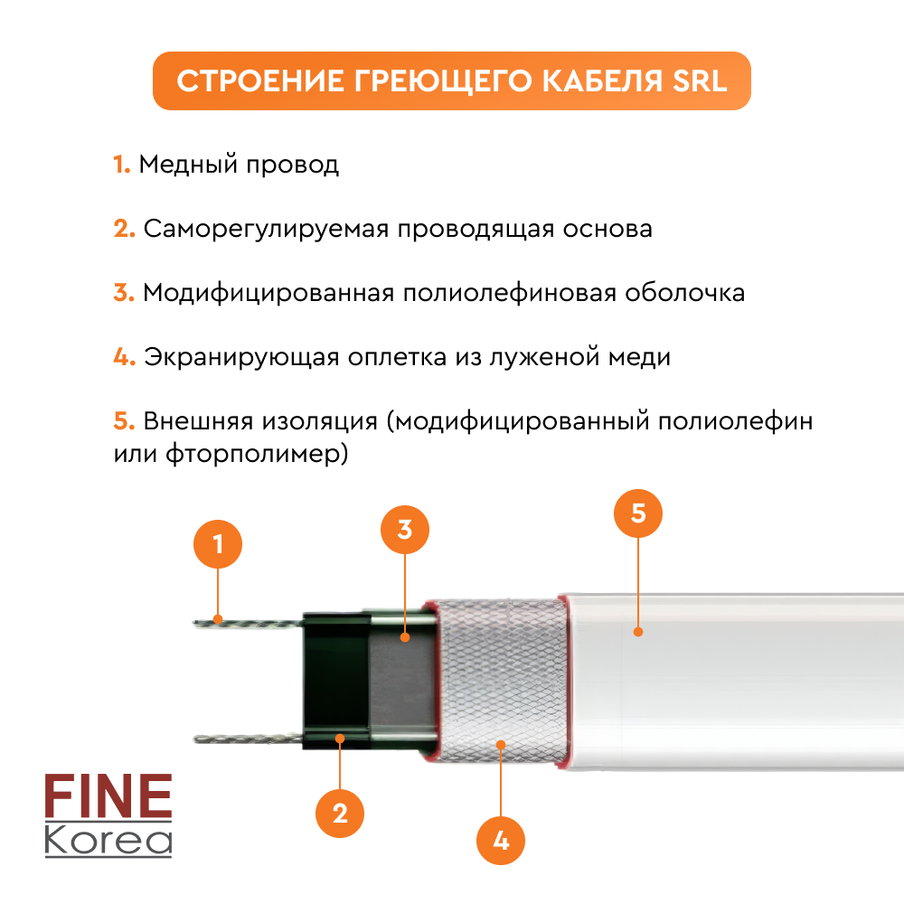 Саморегулирующийся нагревательный кабель “FINE Korea” применяется для обогрева трубопроводов различного назначения, установки систем антиобледенения кровли и водостоков, обогрева полов, открытых площадок.Преимущества SRF(S) 16-2 CT: