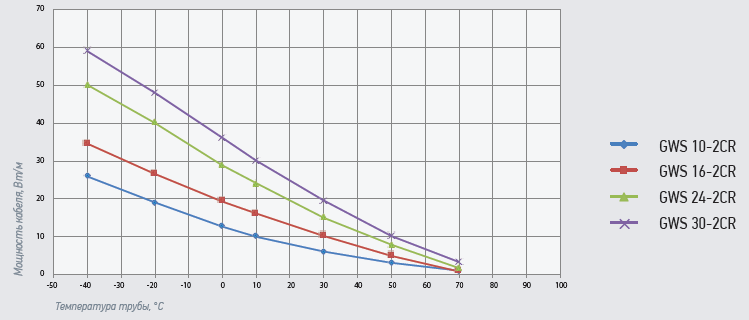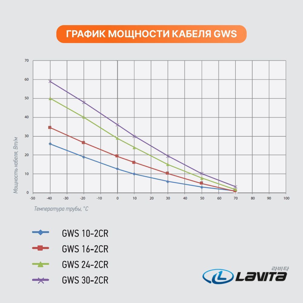 Мощность кабеля LAVITA GWS изменяется в зависимости от температуры окружающей среды.