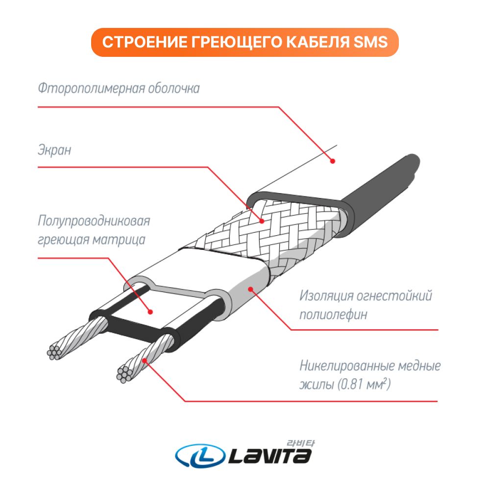 Мощность кабеля LAVITA SMS изменяется в зависимости от температуры окружающей среды.