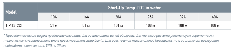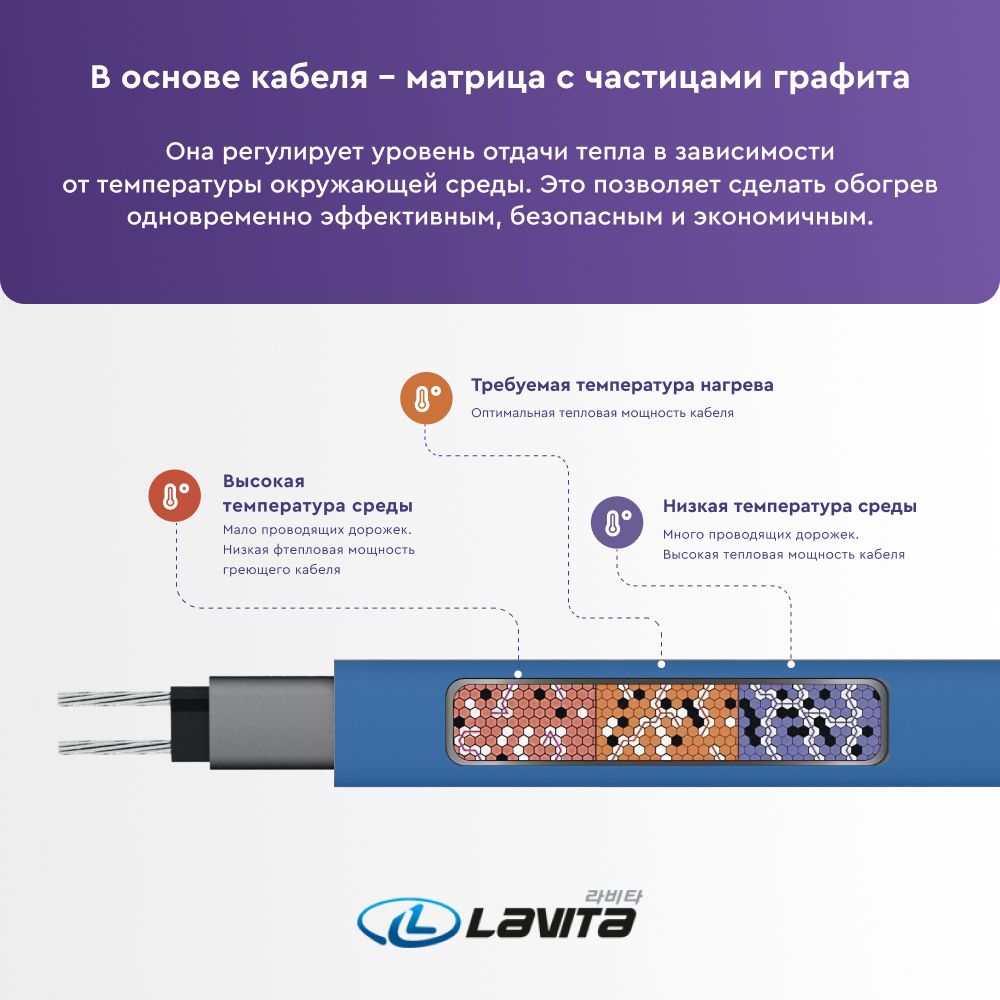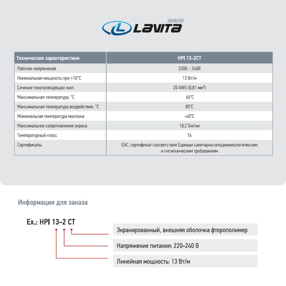 Особенности греющего кабеля LAVITA HPI 13-2 CT: