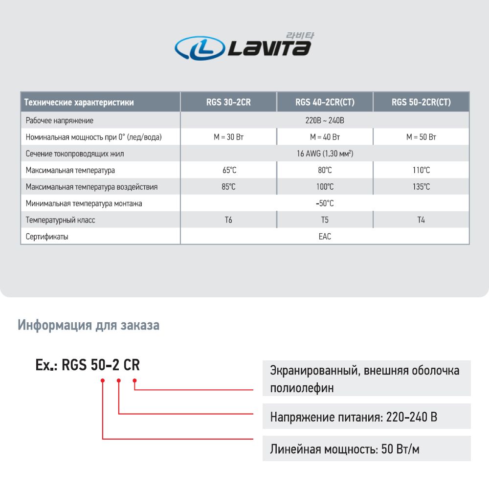 Особенности греющего кабеля LAVITA RGS40-2CR: