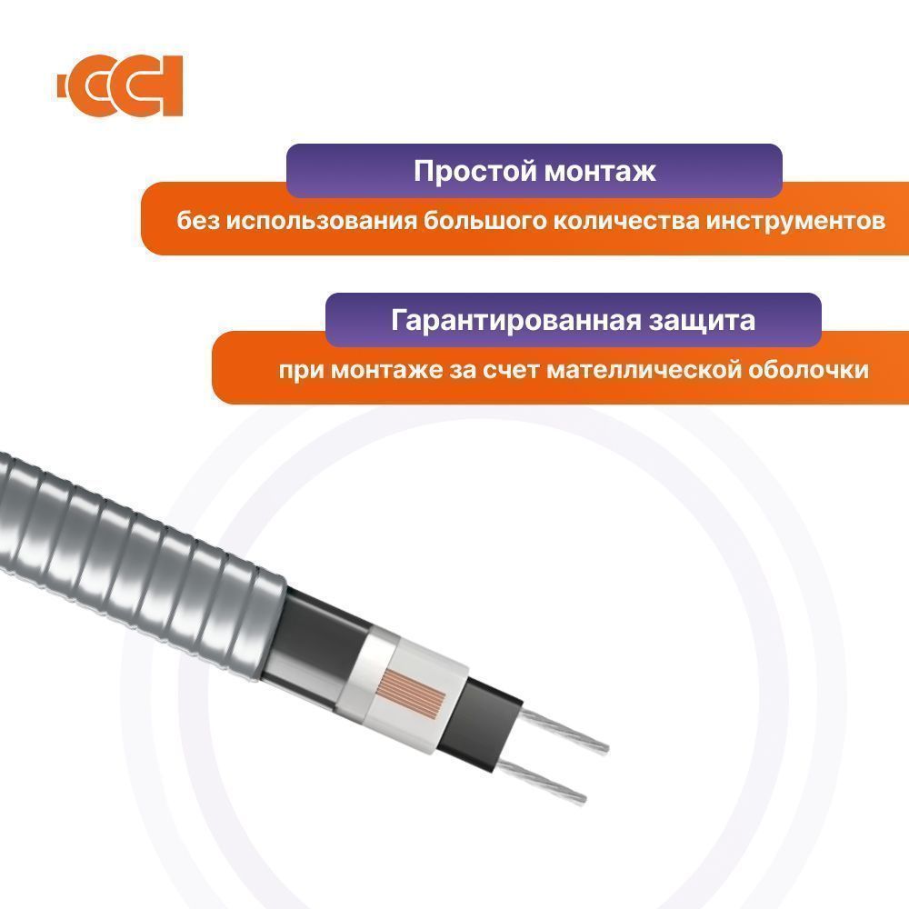 - За счет металлической оболочки также гарантирована полная защита кабеля от повреждений при монтаже;