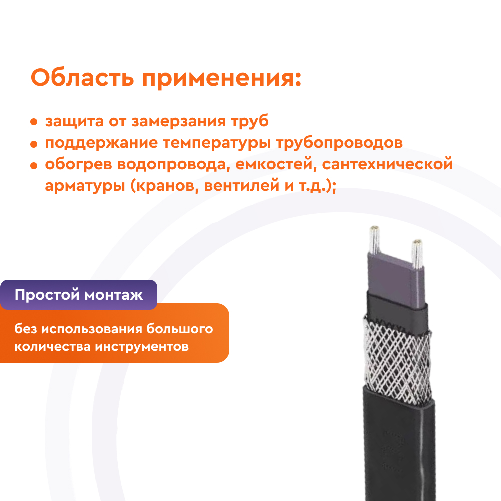 • Обогрев водопровода, емкостей, сантехнической арматуры (кранов, вентилей и т.д.);