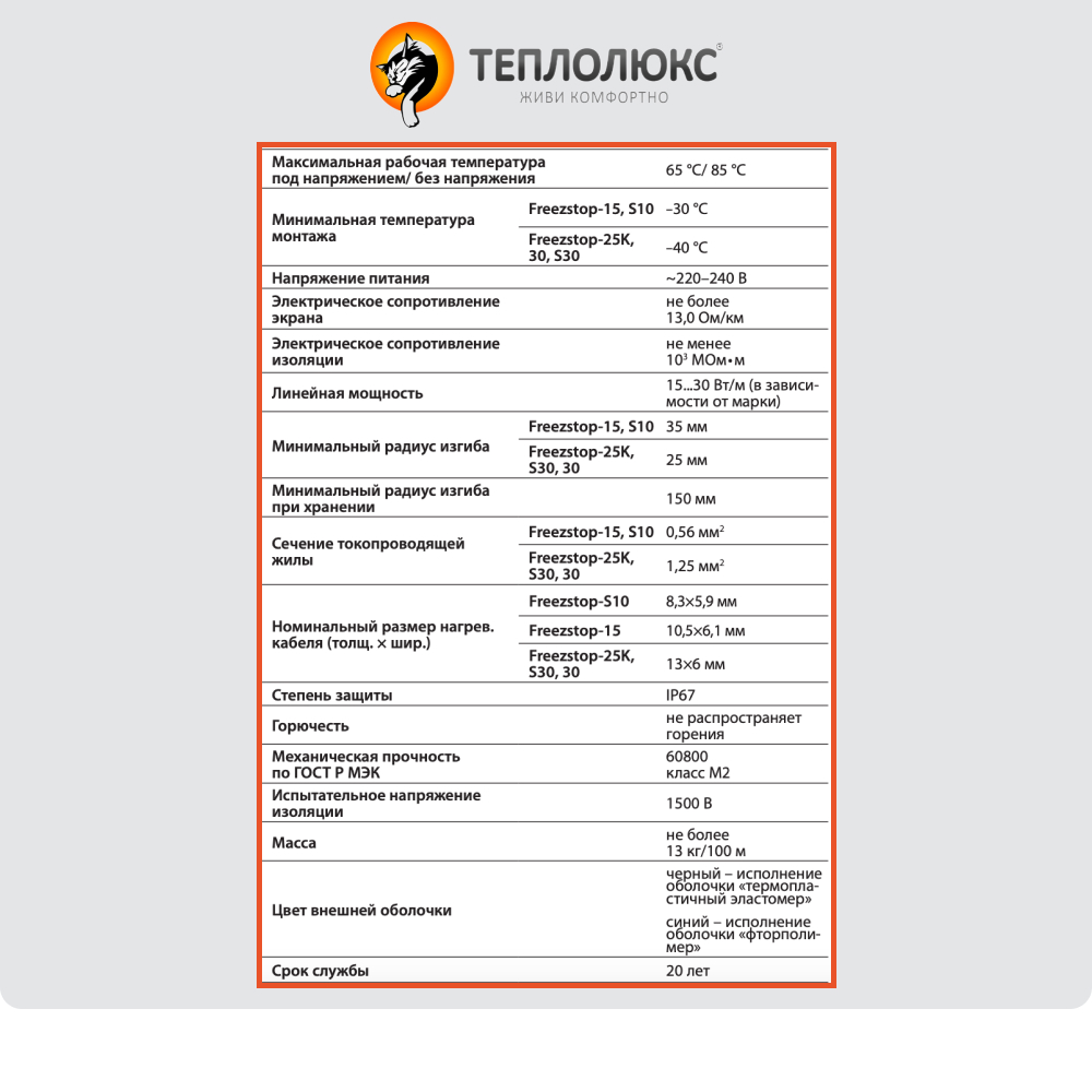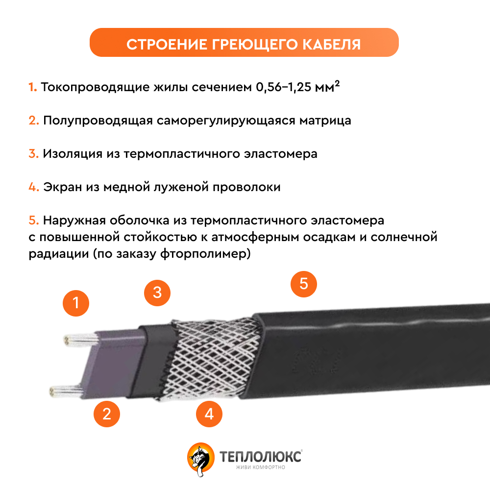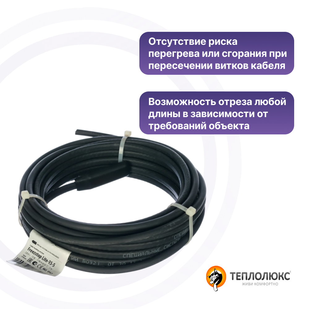 Саморегулирующийся греющий кабель Freezstop-15 Теплолюкс | ЭТК Обогрев