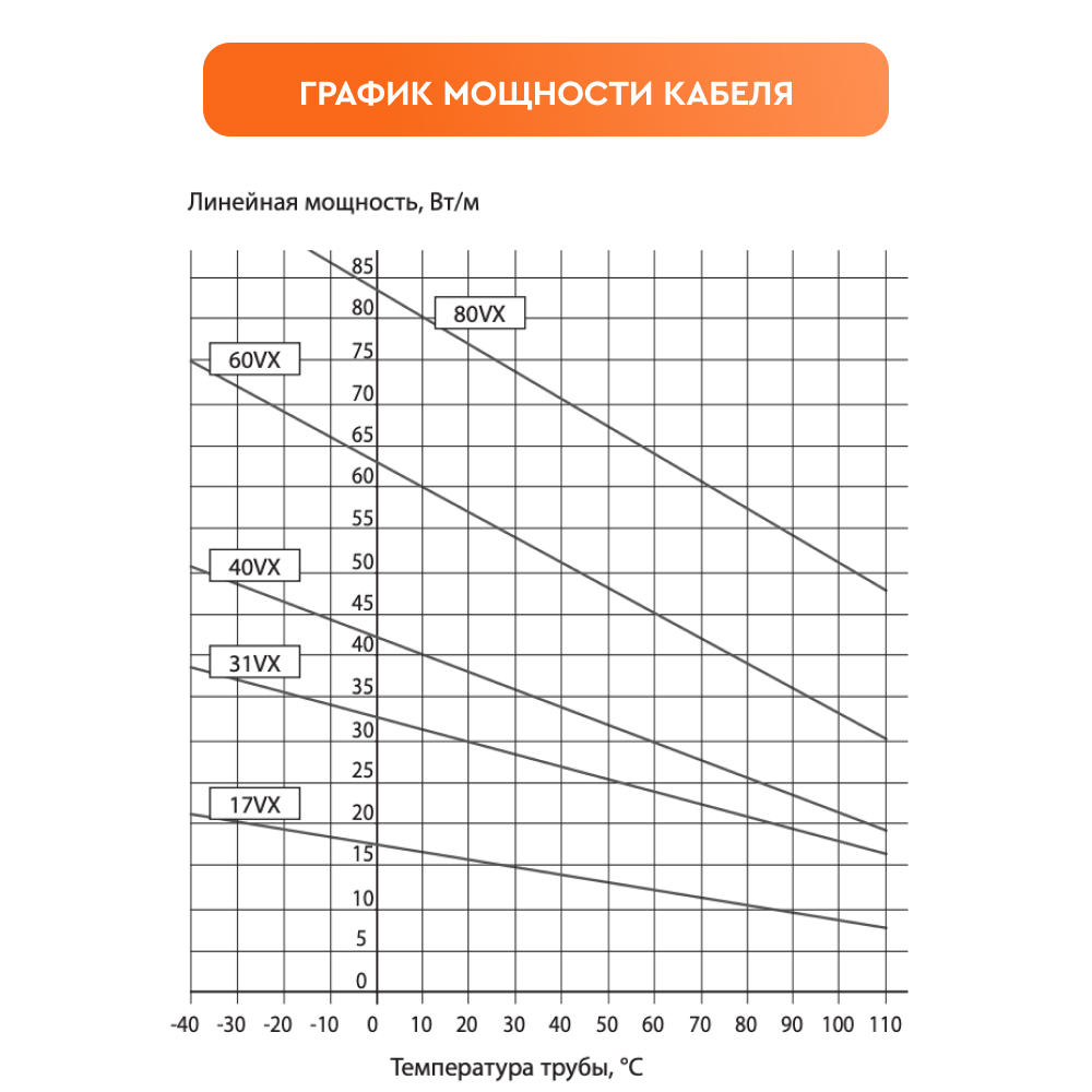- Характеристики саморегулирования повышают безопасность и надежность кабеля VX. Нагревательный кабель не будет перегреваться или перегорать, даже когда его отдельные участки накладываются друг на друга. Его тепловыделение саморегулируется в ответ на изменение температуры;