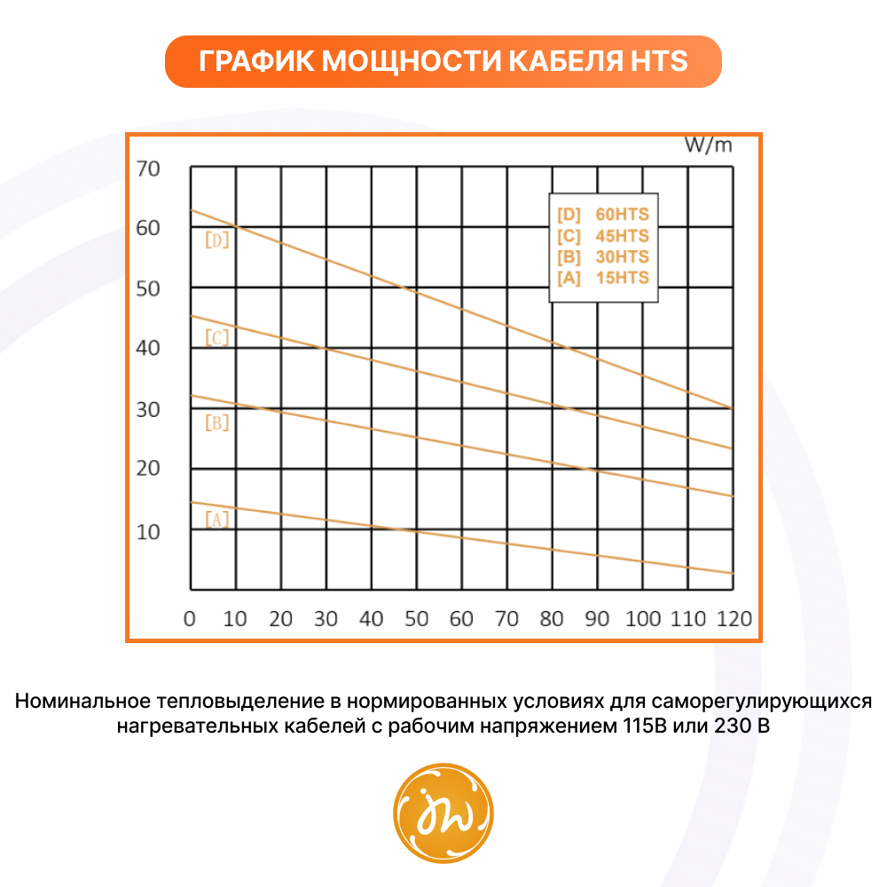 Мощность кабеля изменяется в зависимости от температуры окружающей среды.