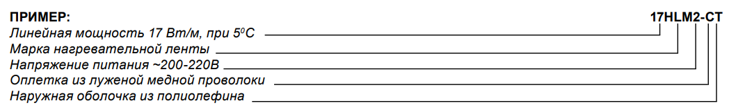 Номинальное тепловыделение в нормированных условиях для саморегулирующихся нагревательных кабелей Heatline HLM: