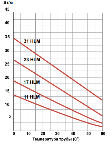 График мощности кабеля Heatline HLM
