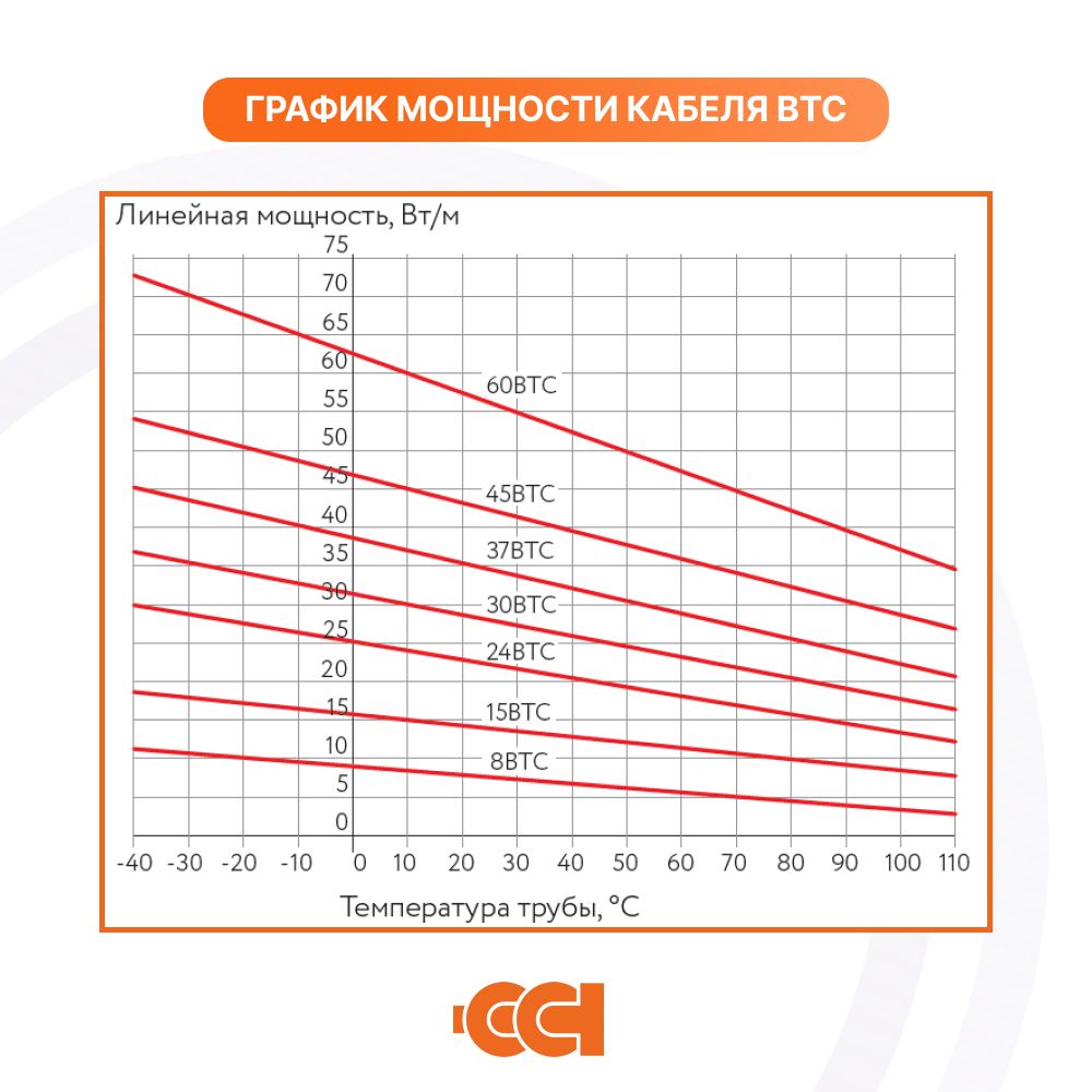 - Характеристики саморегулирования повышают безопасность и надежность кабеля. ВТС не будет перегреваться или перегорать, даже когда его отдельные участки накладываются друг на друга. Его тепловыделение саморегулируется в ответ на изменение температуры;