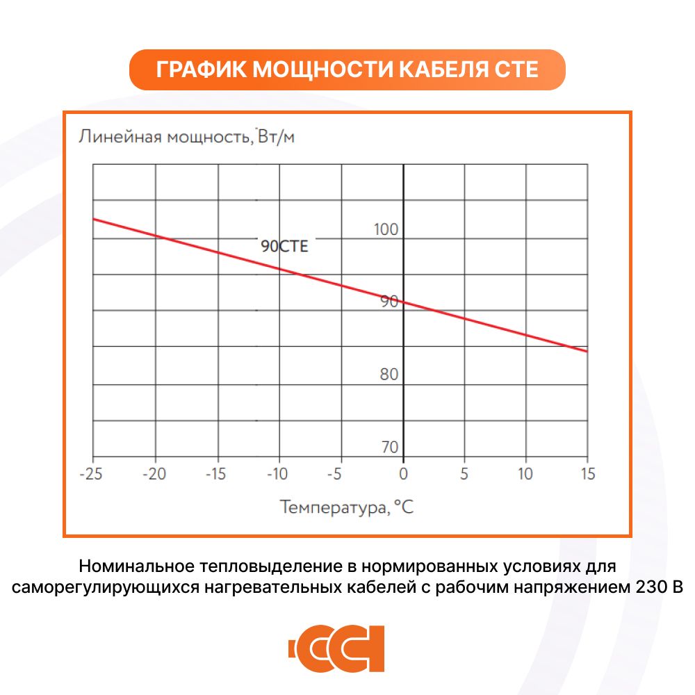 Номинальное тепловыделение в нормированных условиях для саморегулирующихся нагревательных кабелей ССТ СТЕ с рабочим напряжением 115В или 230В: