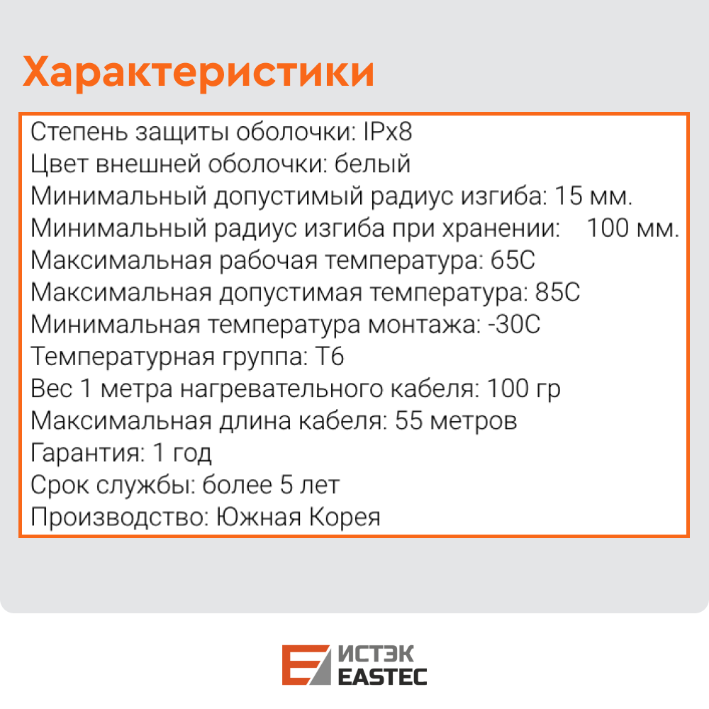Особенности применения греющего кабеля EASTEK MHL 15-2CR: