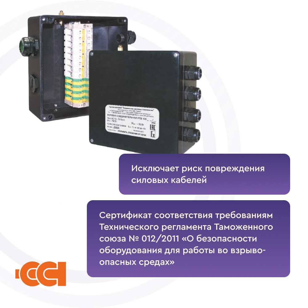 Конструкция корпуса обеспечивает защиту от проникновения влаги и пыли IP66 и высокую коррозионную стойкость. Применяемые клеммные наборы позволяют обеспечить подключение многожильных или одножильных проводов сечением от 1,5 до 10 мм².Гарантия на коробку РТВ 1005-0/0 (10 мм2) составляет 1 год с момента продаж