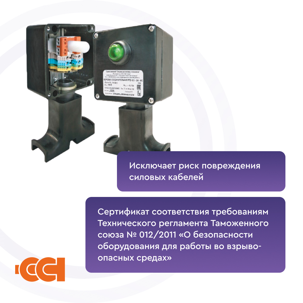 Конструкция корпуса обеспечивает защиту от проникновения влаги и пыли IP66 и высокую коррозионную стойкость. Применяемые клеммные наборы позволяют обеспечить подключение многожильных или одножильных проводов сечением от 1,5 до 10 мм².Гарантия на коробку РТВ 401-0/0-ИС составляет 1 год с момента продаж
