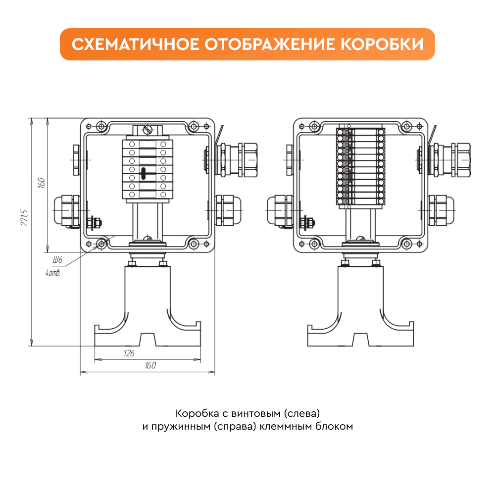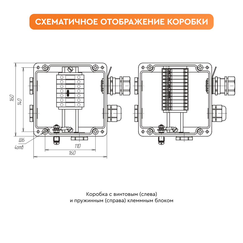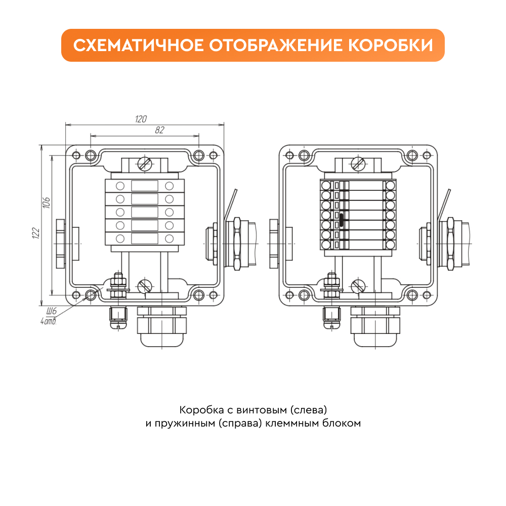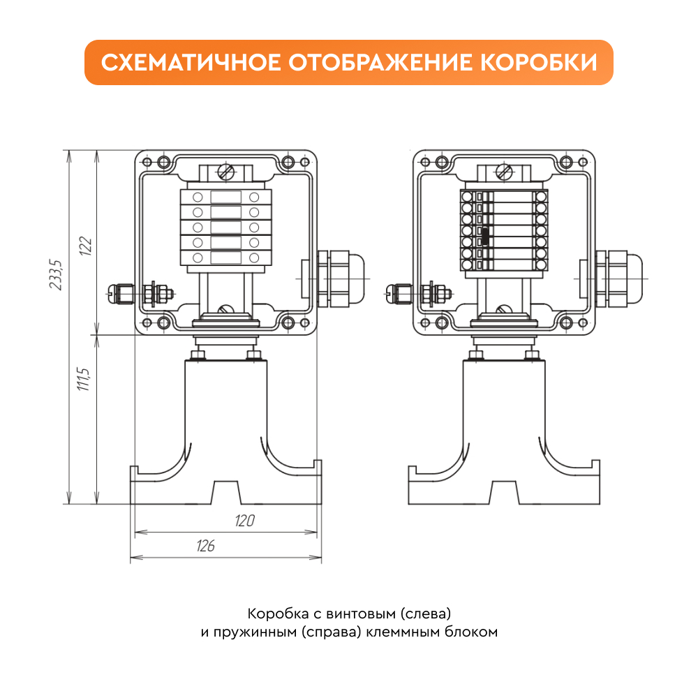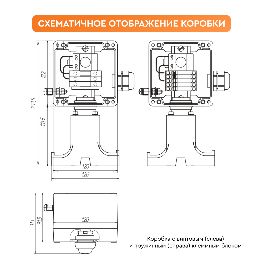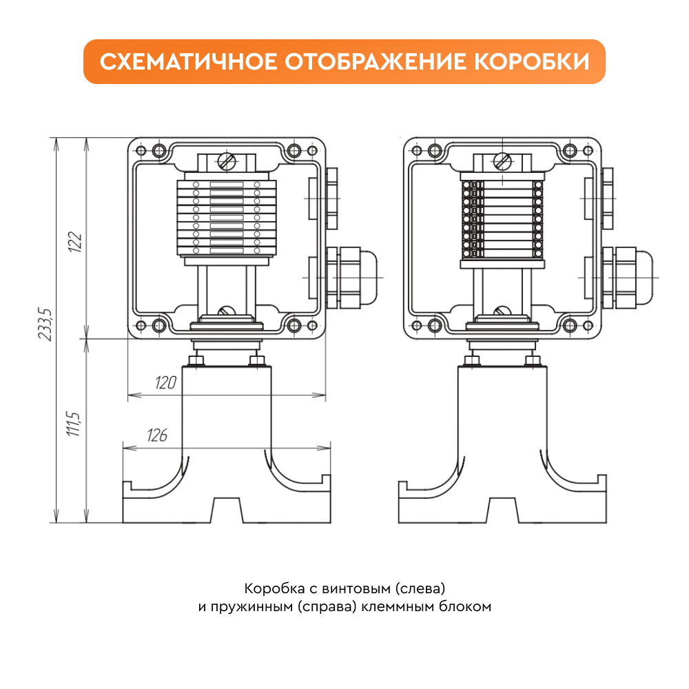 Для заказов доступны исполнения коробок с винтовыми или пружинными клеммными зажимами.