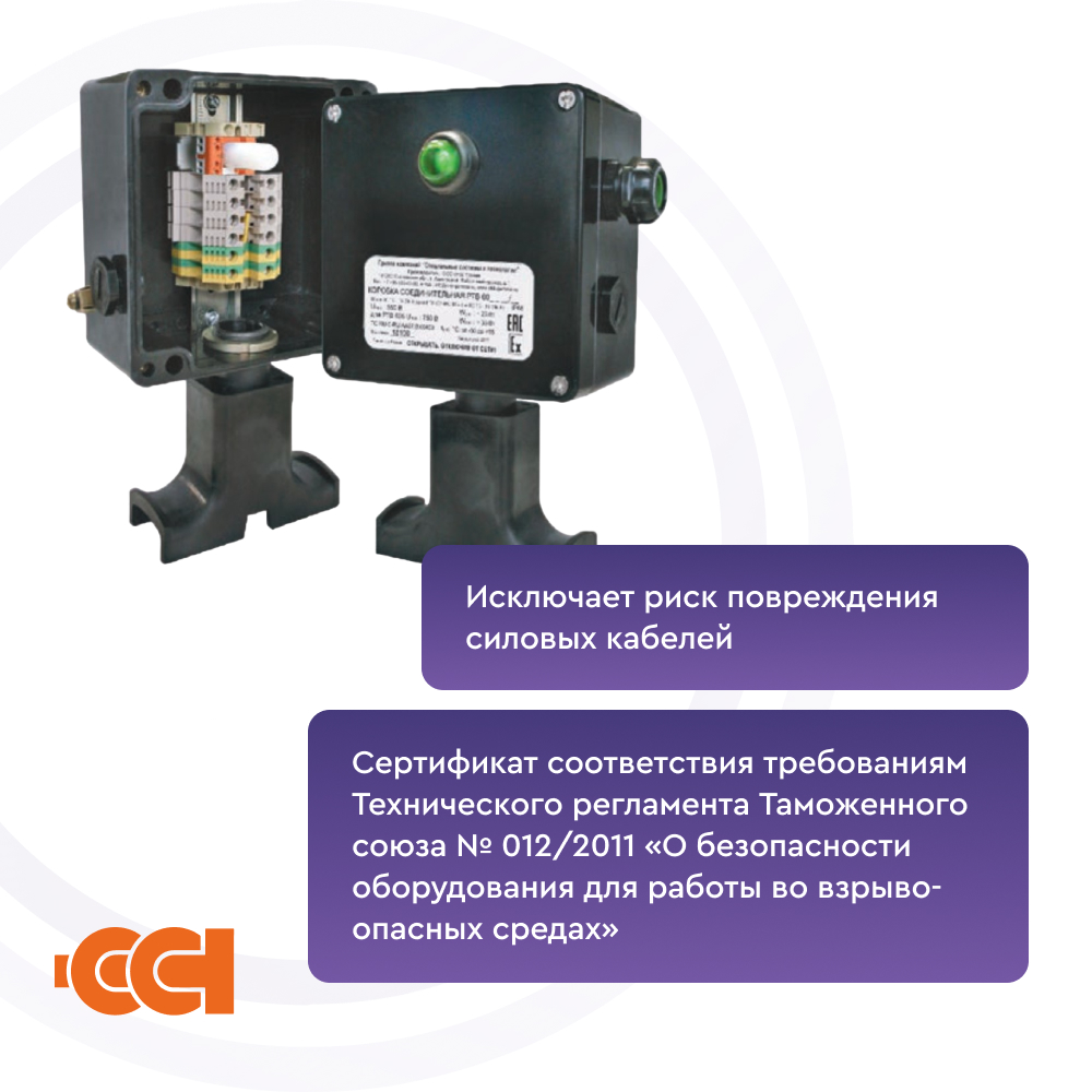 Конструкция корпуса обеспечивает защиту от проникновения влаги и пыли IP66 и высокую коррозионную стойкость. Применяемые клеммные наборы позволяют обеспечить подключение многожильных или одножильных проводов сечением от 1,5 до 10 мм².Гарантия на коробку РТВ 601-1Б/0-ИС составляет 1 год с момента продаж