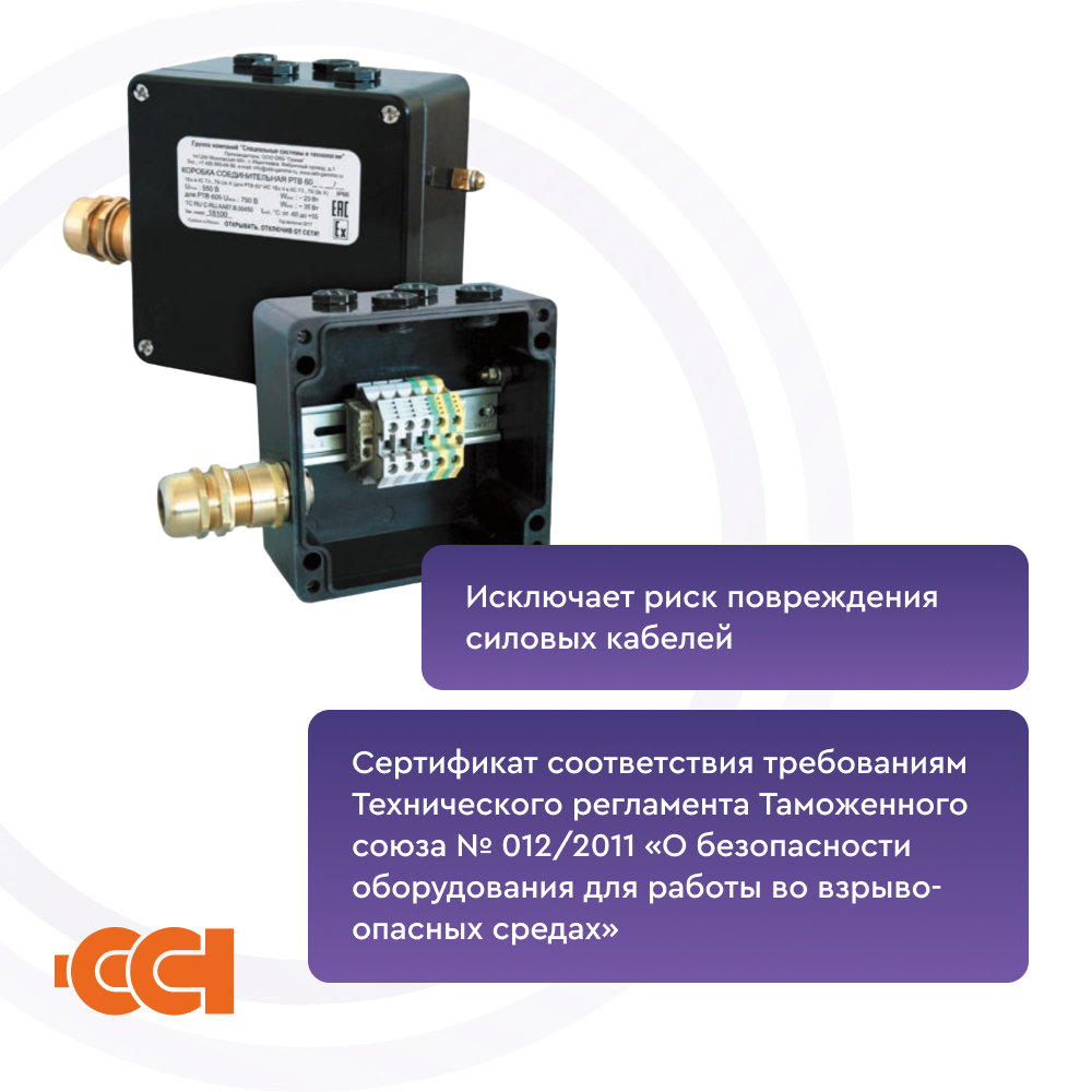 Конструкция корпуса обеспечивает защиту от проникновения влаги и пыли IP66 и высокую коррозионную стойкость. Применяемые клеммные наборы позволяют обеспечить подключение многожильных или одножильных проводов сечением от 1,5 до 10 мм².Гарантия на коробку РТВ 606-0/0 составляет 1 год с момента продаж