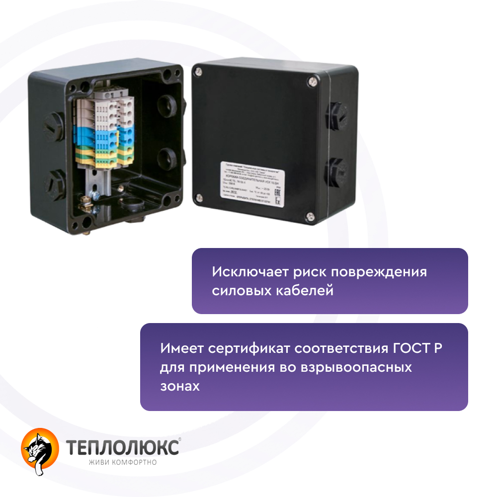 - Исключает риск повреждения нагревательных лент в местах заделки;