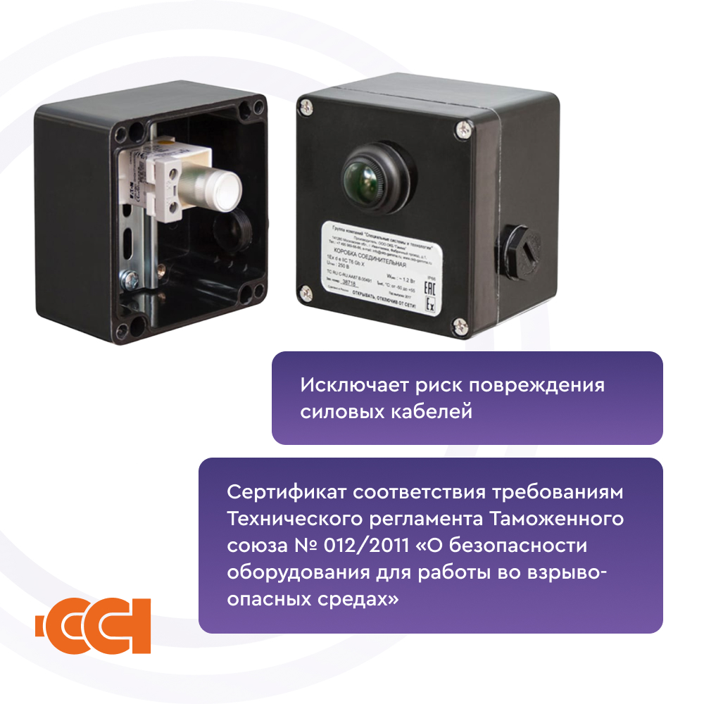 Коробка соединительная ВЭ 122.С предназначена для индикации наличия напряжения на нагревательной секции на базе саморегулирующегося электрического нагревательного кабеля*. Коробка крепится при помощи кронштейна непосредственно на трубопроводе или близлежащей металлоконструкции, стене здания. Световая лампа со сверхярким светодиодом сигнализирует о наличии напряжения в конце нагревательной секции.