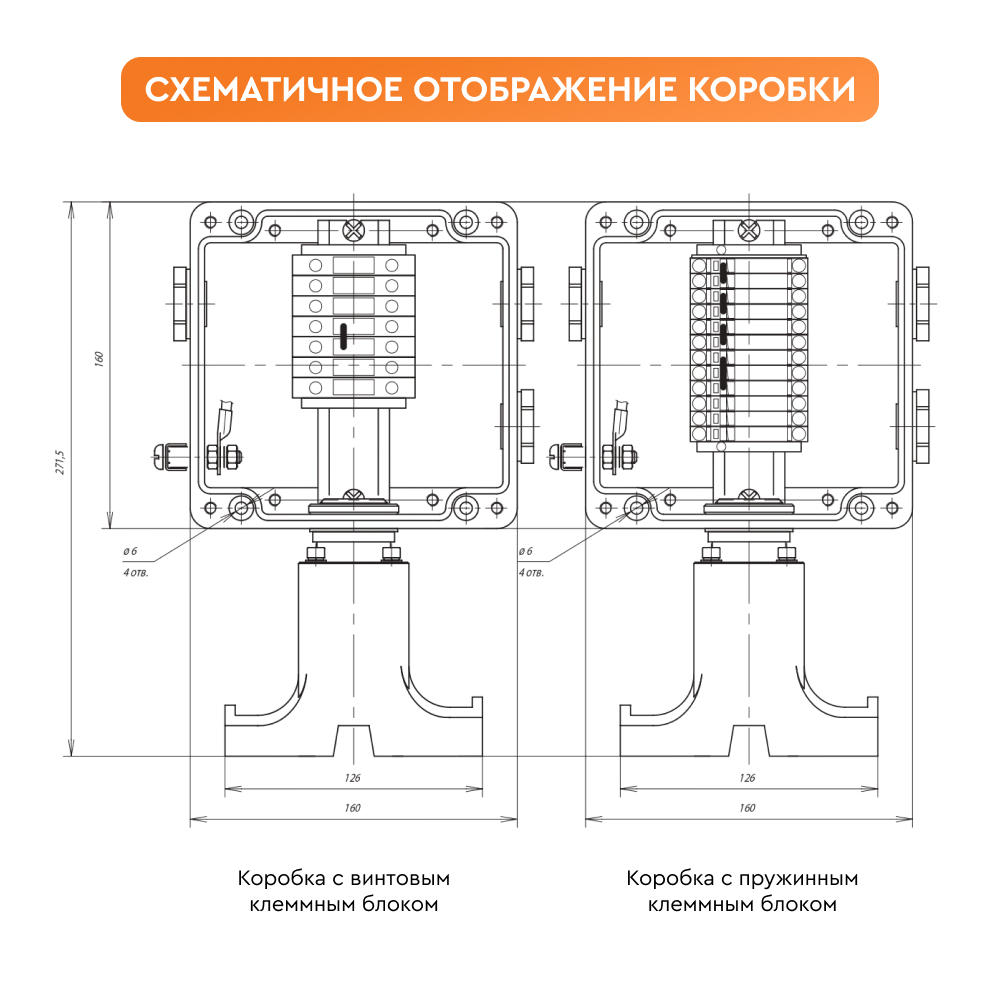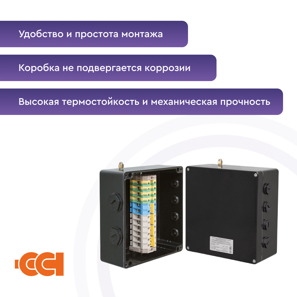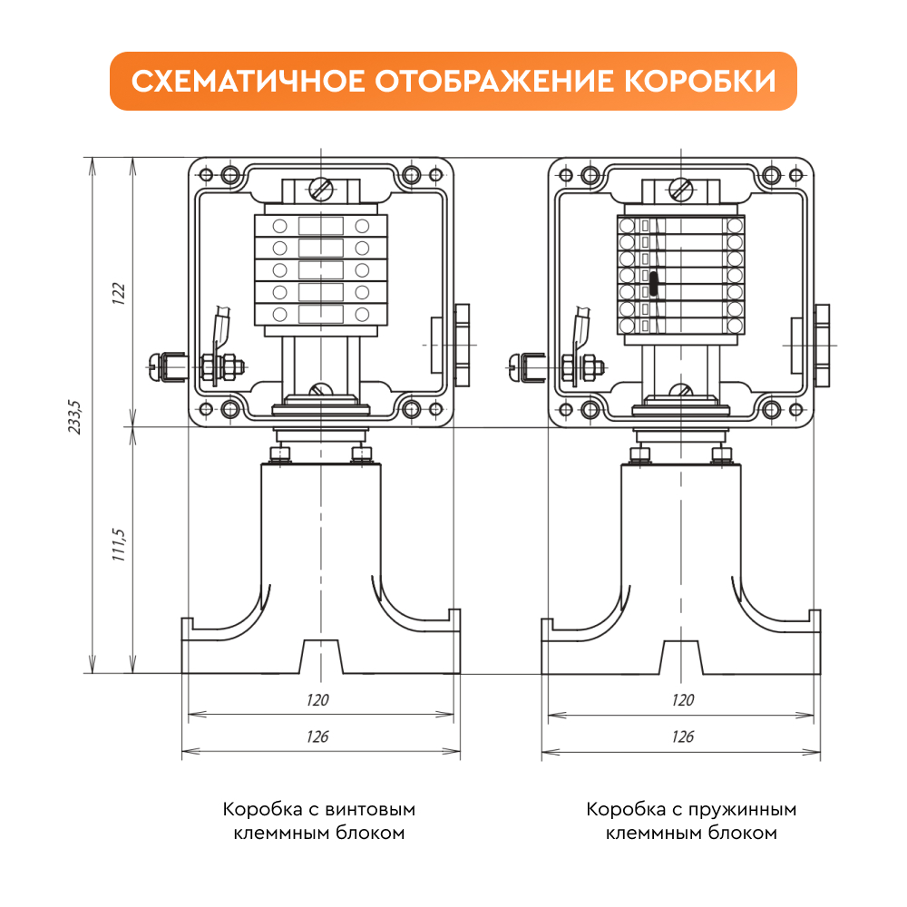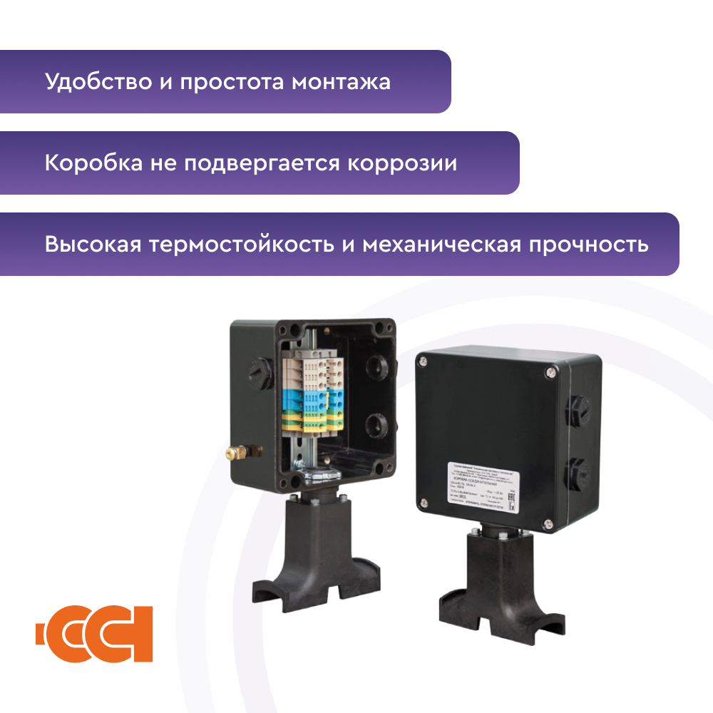 Конструкция корпуса обеспечивает защиту от проникновения влаги и пыли степени IP66 и высокую коррозионную стойкость. Применяемые клеммные наборы позволяют подключить многожильные или одножильные провода сечением от 0,5 до 2,5 мм2 . Для заказов доступны исполнения коробок с винтовыми или пружинными клеммными зажимами, а также с различными видами взрывозащиты – вида e (повышенная надежность) и вида ia (искробезопасная электрическая цепь). Гарантия на коробку ВЭ 122.ДУ составляет 1 год с момента продажи.