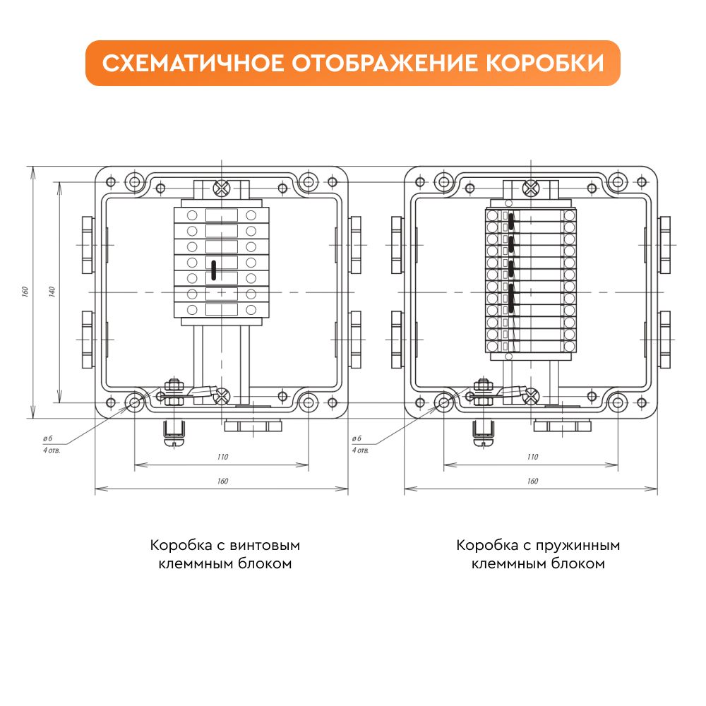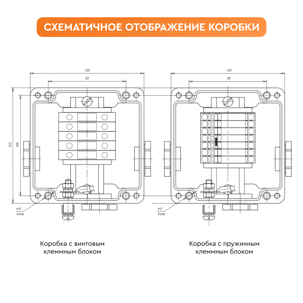 - Корпус коробки ВЭ 122.ДУ с клеммным набором - 1 шт.