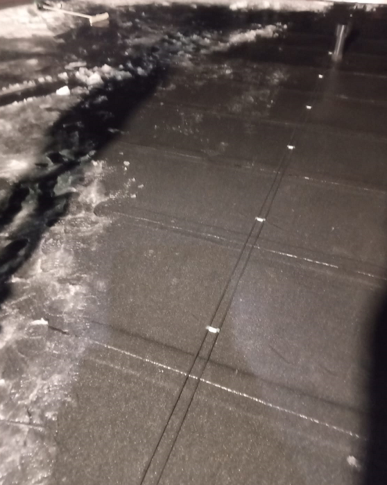 На плоской кровле был уложен саморегулирующийся нагревательный кабель SRL 30-2CR-UF в две нити в местах ската, что обеспечивает равномерное распределение тепла и предотвращает образование наледи. В водосточных трубах также были уложены две нитки кабеля, что позволяет эффективно бороться с замерзанием воды и предотвращает засоры. В местах стока кабель был уложен змейкой, что обеспечивает максимальную площадь обогрева и предотвращает образование заторов талой воды в водосток.