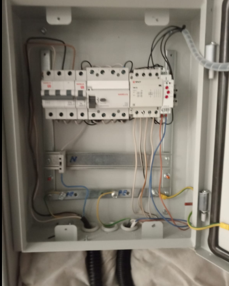 Был изготовлен и установлен щит управления системой обогрева КР 3/16/100, который подключен к главному распределительному щиту заказчика. На кровле был установлен датчик температуры, который обеспечивает точное измерение температуры. С помощью терморегулятора, встроенного в щите, заказчик сможет установить диапазон, при котором система обогрева будет автоматически запускаться и отключаться.