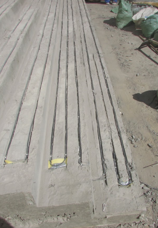 После установки греющего кабеля, монтажная бригада проложила силовой кабель от источника питания через распределительным коробкам, обеспечивающим безопасное подключение системы. К ним же был подведен греющий кабель и прочие компоненты системы. Силовой кабель был заведен внутрь здания и подключен к щиту управления обогревом.