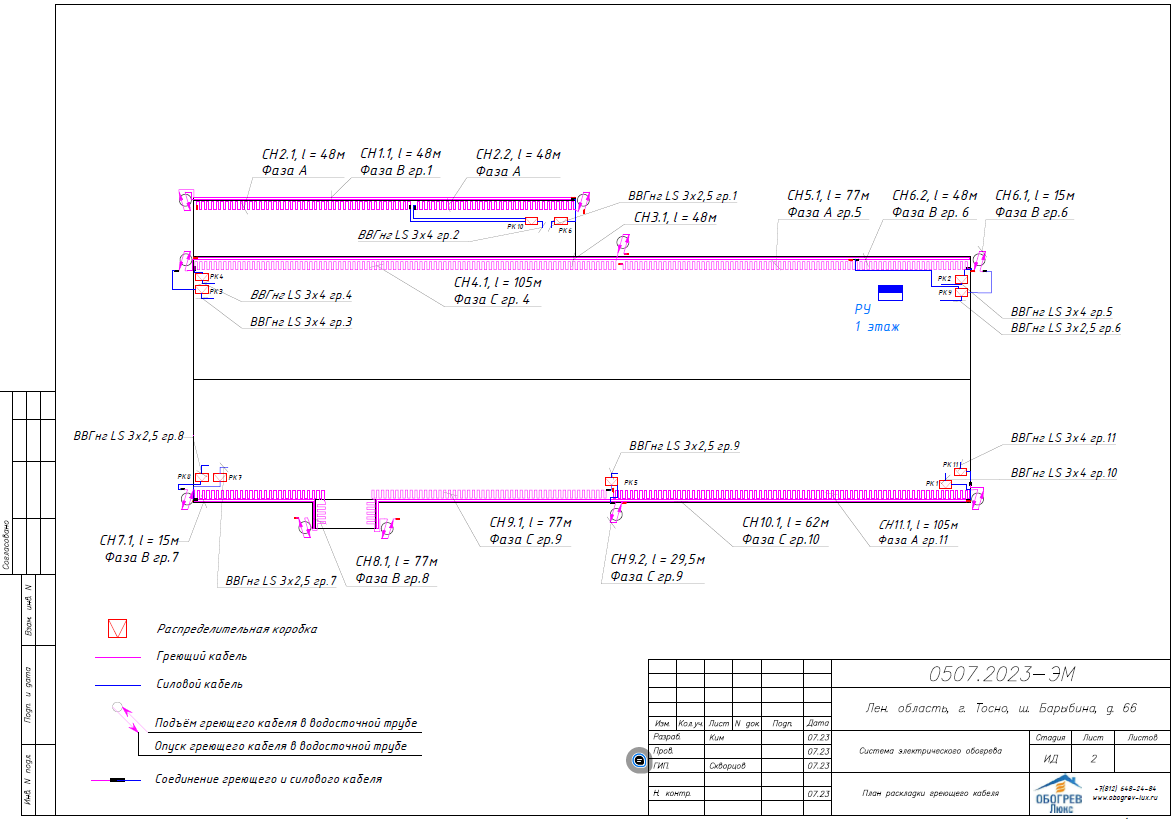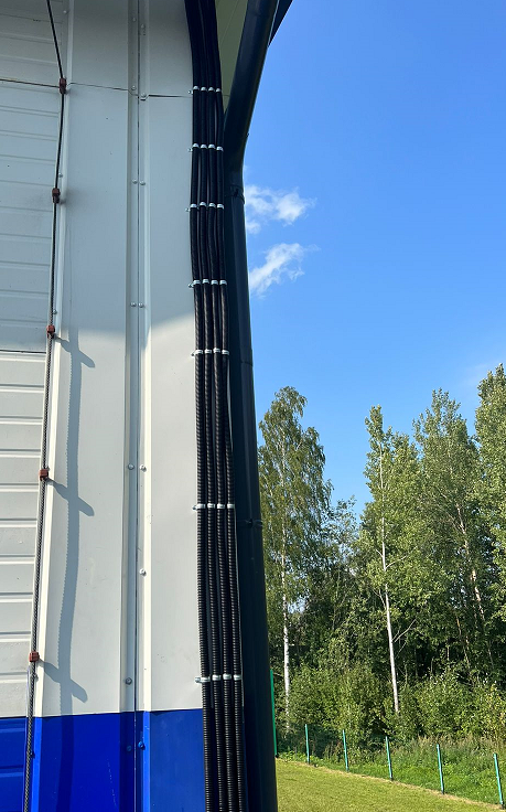 Монтажная бригада установила распределительные коробки Abox100 и Abox40, которые обеспечили надежное соединение всех элементов системы. Для защиты кабелей от внешних воздействий использовались трубы гофрированные из ПВХ (полиамидные), черные. Силовые кабели ВВГнг-(А)LS 3х4 и ВВГнг-LS 3х2,5 были подключены к греющему кабелю и распределительным коробкам, обеспечивая надежное электропитание системы.