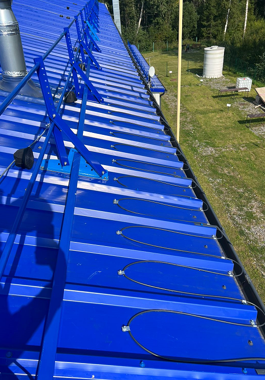 На кровле был установлен датчик температуры, который обеспечил точный контроль работы системы обогрева, за счет срабатывания терморегулятора в зависимости от погодных условий. После установки всех элементов системы были проведены пусконаладочные работы, включающие проверку работоспособности всех компонентов и настройку параметров работы системы.